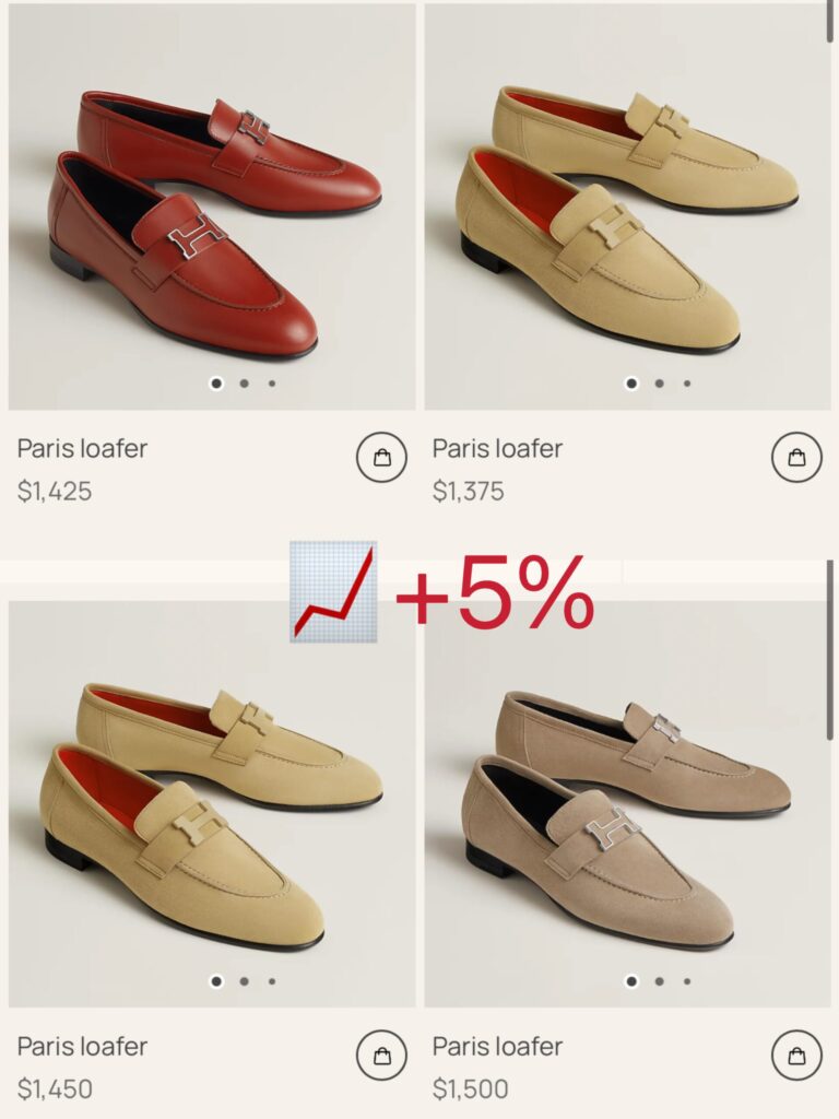 Silk accessories experienced a 4–6 percent price increase in 2026, consistent with Hermès’ historical pricing pattern. Twillys and other silk items rose modestly, without the sharp jumps seen in footwear or fine jewelry.