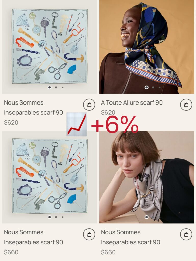 Silk remains one of the most predictable Hermès categories, with gradual and expected annual increases.
