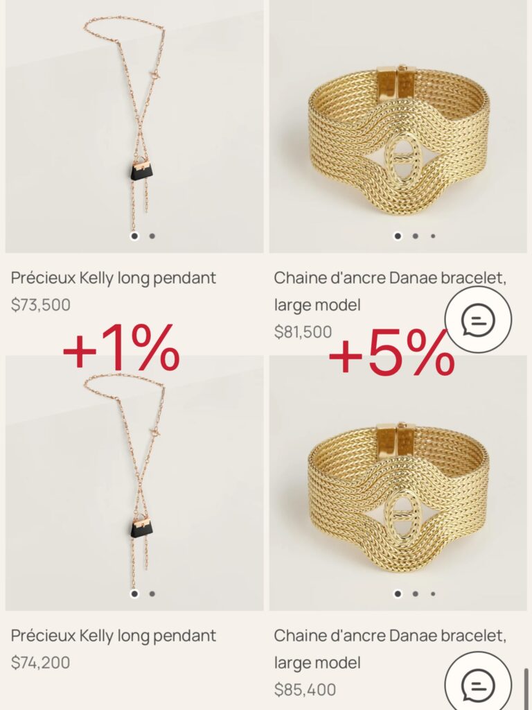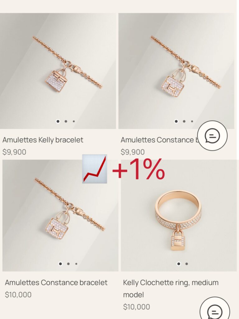 Pavé diamond jewelry, on the other hand, saw minimal price movement. With diamond prices remaining relatively steady and these pieces already positioned at a premium, Hermès appears to have limited further increases in this category.